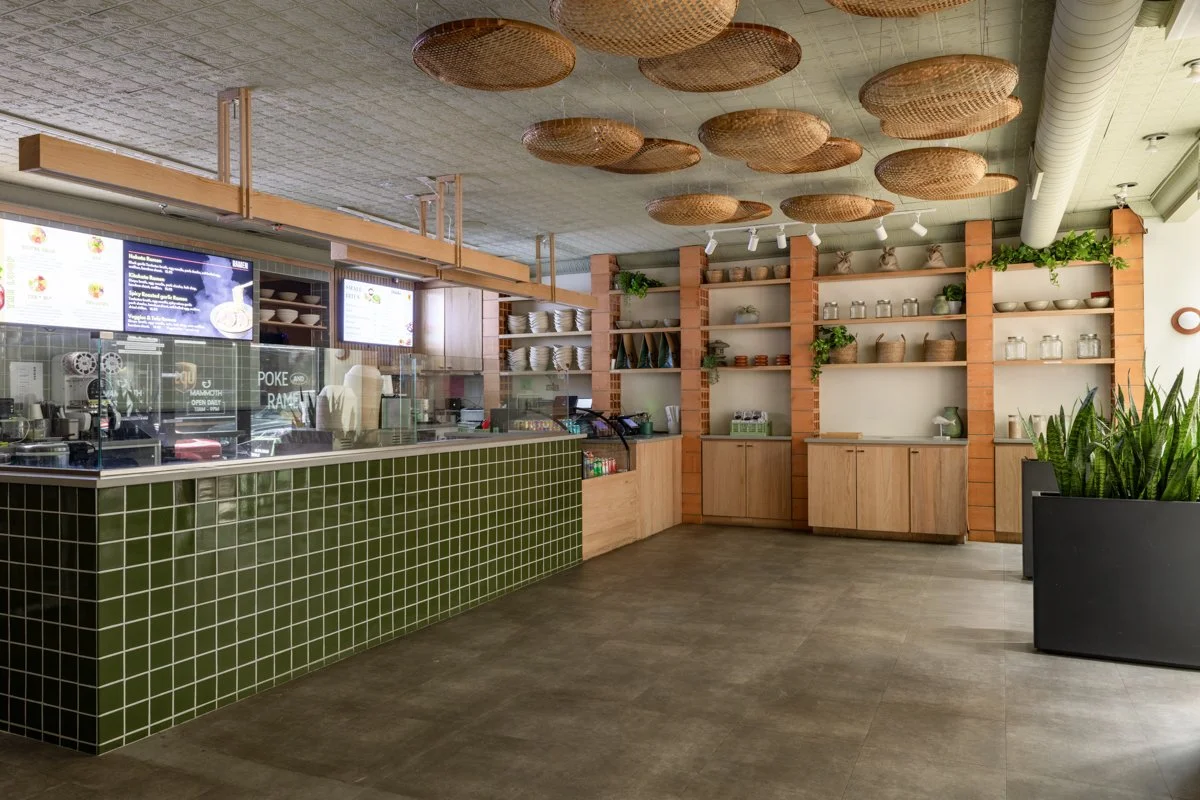 Earthy interiors create a natural setting for this Poke restaurant